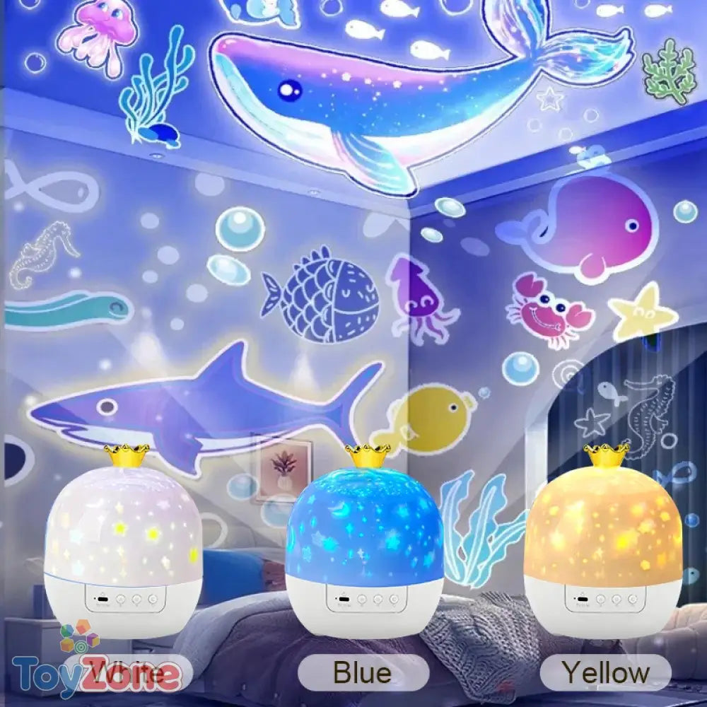 Crown Star Light Projection Lamp Rotating Night Light for Kids Bedroom